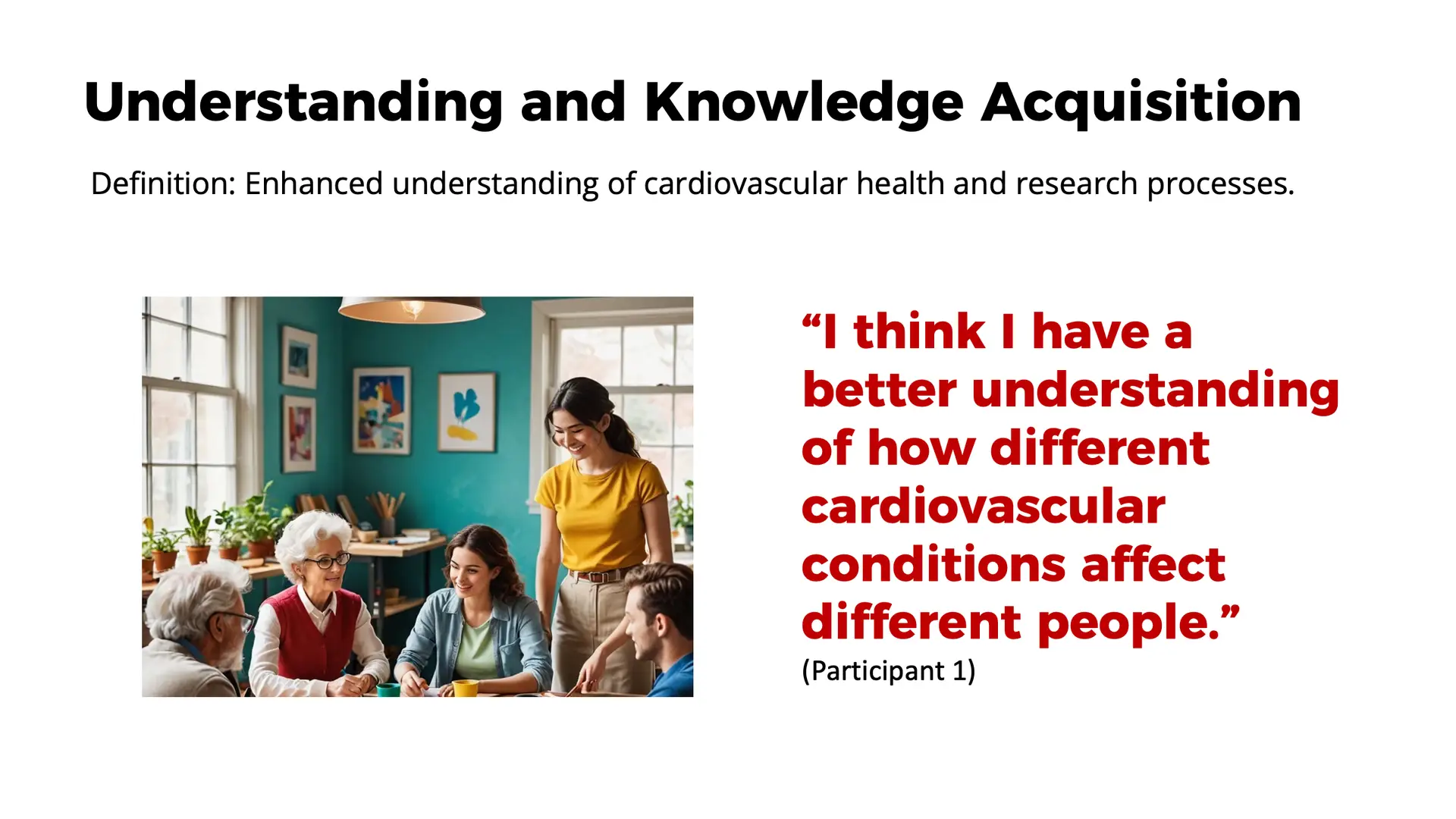 1. Understanding and Knowledge Acquisition: Participants reported a better understanding of cardiovascular health and research processes.