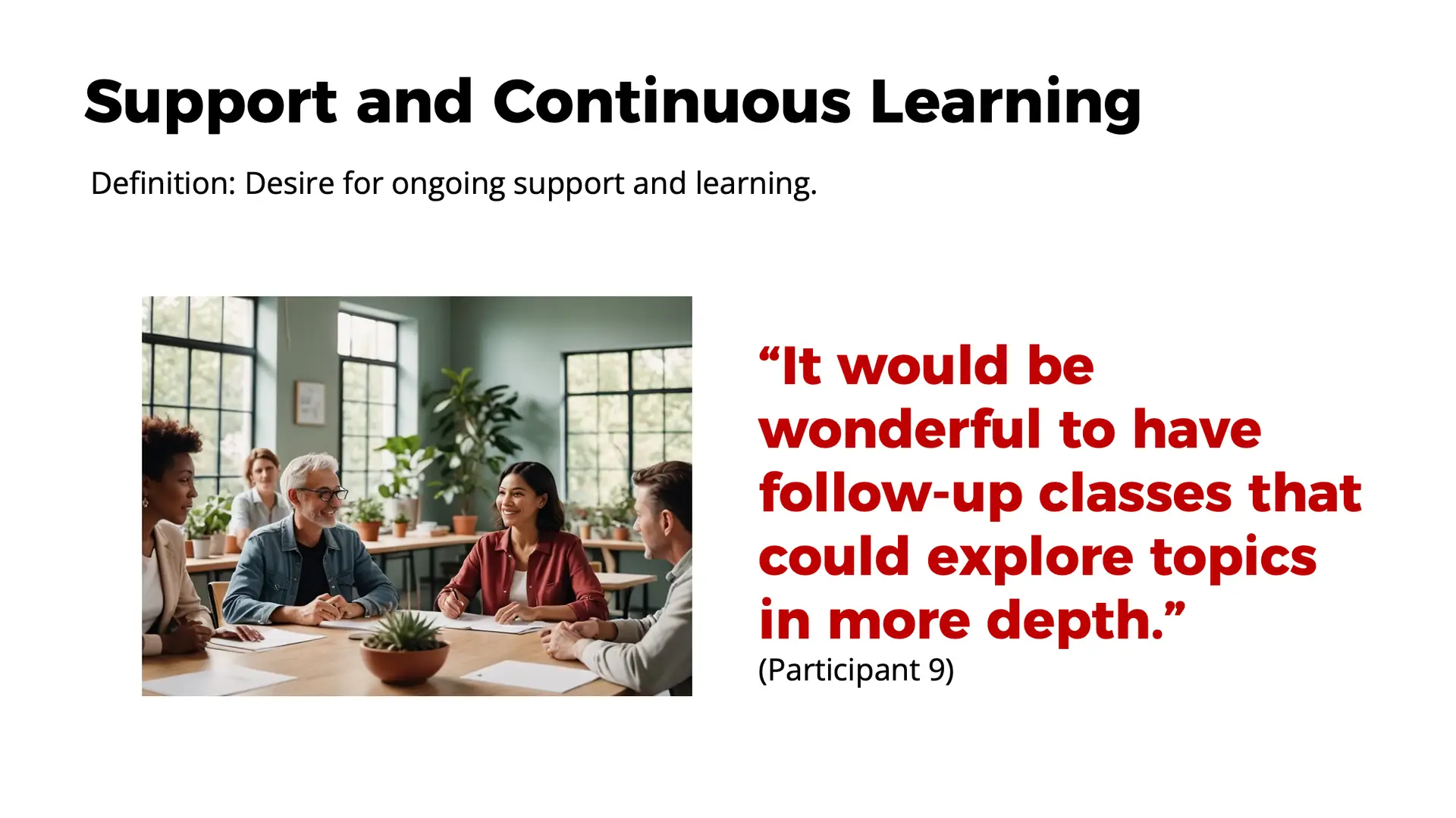 7. Support and Continuous Learning: The desire for ongoing support and learning opportunities.
