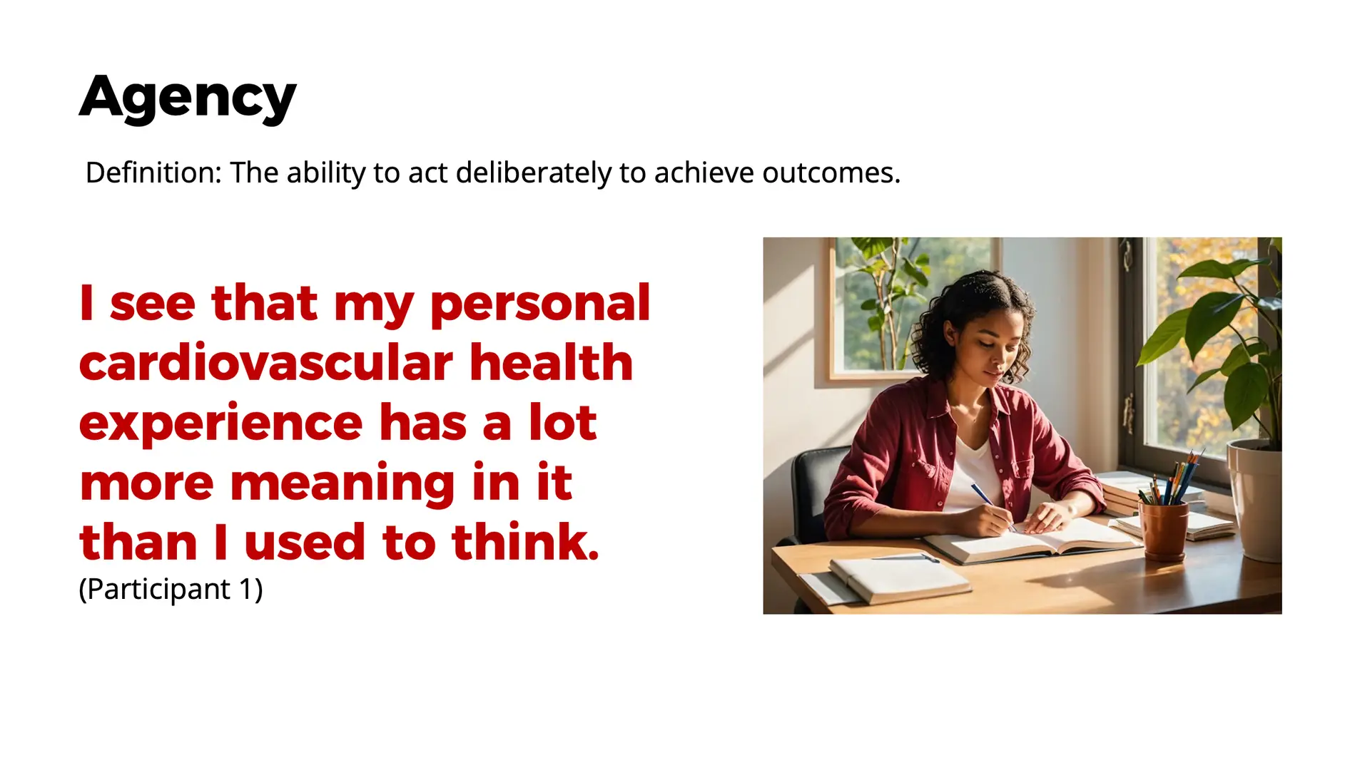 • “I think I have a better understanding of how different cardiovascular conditions affect different people.” (Participant 1)