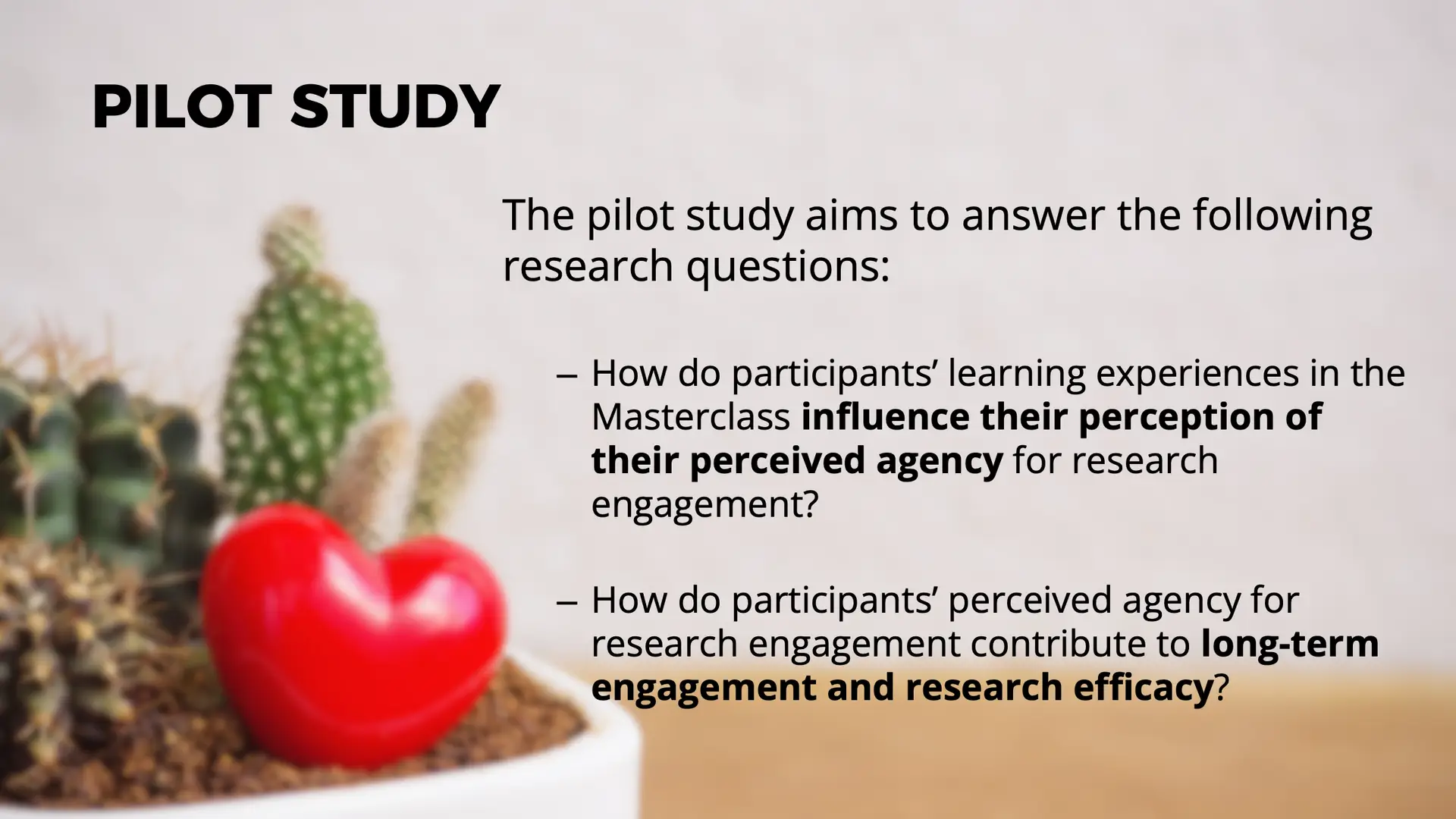 • How do participants’ learning experiences in the Masterclass influence their perceived agency for research engagement?